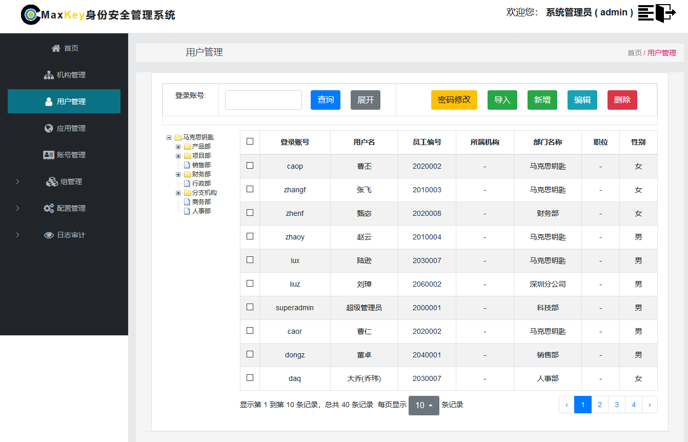 Maxkey (Marx's key) Single Sign On system, which means the Maximum key, Leading-Edge Enterprise-Class open source IAM Identity and Access management product , Support OAuth 2.0/OPENID CONNECT, SAML 2.0, JWT, CAS, SCIM and other standard protocols, and provide Simple, Standard, Secure and Open Identity management (IDM), Access management (AM), Single Sign On (SSO), RBAC permission management and Resource management.