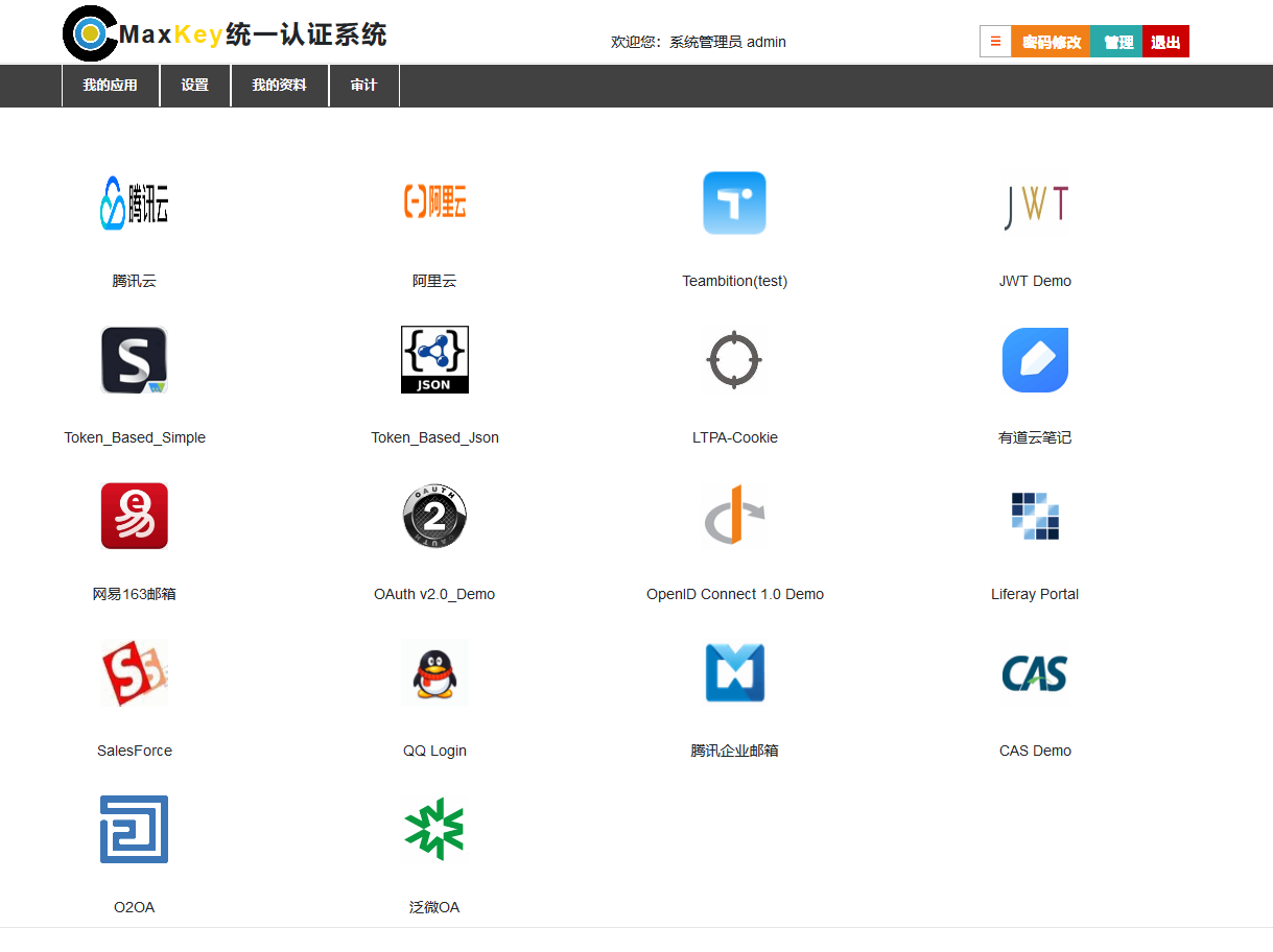 MaxKey(马克思的钥匙)单点登录认证系统(Single Sign On System),寓意是最大钥匙,是业界领先的企业级开源IAM身份管理和身份认证产品,支持OAuth 2.0/OpenID Connect、SAML 2.0、JWT、CAS、SCIM等标准协议,提供简单、标准、安全和开放的用户身份管理(IDM)、身份认证(AM)、单点登录(SSO)、RBAC权限管理和资源管理等。