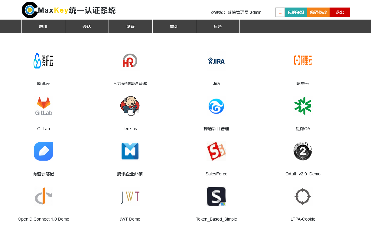 Maxkey Single Sign On system, which means the Maximum key, Leading-Edge Enterprise-Class IAM Identity and Access management product , Support OAuth 2.x/OPENID CONNECT, SAML 2.0, JWT, CAS, SCIM and other standard protocols, and provide Simple, Standard, Secure and Open Identity management (IDM), Access management (AM), Single Sign On (SSO), RBAC permission management and Resource management.