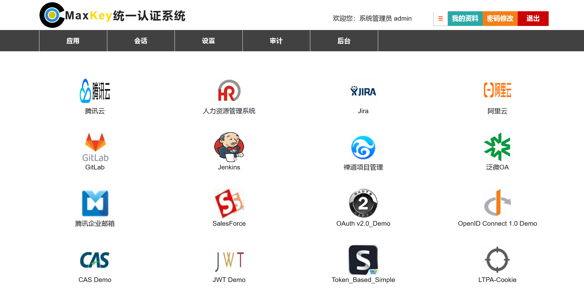Maxkey Single Sign On system, which means the Maximum key, Leading-Edge Enterprise-Class IAM Identity and Access management product , Support OAuth 2.x/OPENID CONNECT, SAML 2.0, JWT, CAS, SCIM and other standard protocols, and provide Simple, Standard, Secure and Open Identity management (IDM), Access management (AM), Single Sign On (SSO), RBAC permission management and Resource management.