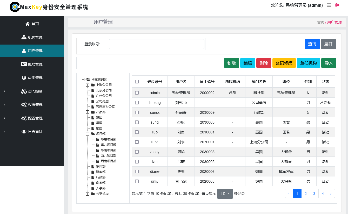 Maxkey Single Sign On system, which means the Maximum key, Leading-Edge Enterprise-Class IAM Identity and Access management product , Support OAuth 2.x/OPENID CONNECT, SAML 2.0, JWT, CAS, SCIM and other standard protocols, and provide Simple, Standard, Secure and Open Identity management (IDM), Access management (AM), Single Sign On (SSO), RBAC permission management and Resource management.