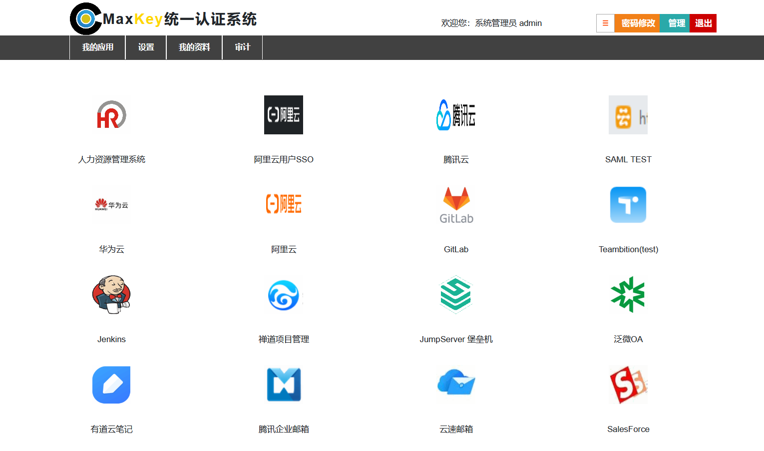 Maxkey (Marx's key) Single Sign On system, which means the Maximum key, Leading-Edge Enterprise-Class open source IAM Identity and Access management product , Support OAuth 2.0/OPENID CONNECT, SAML 2.0, JWT, CAS, SCIM and other standard protocols, and provide Simple, Standard, Secure and Open Identity management (IDM), Access management (AM), Single Sign On (SSO), RBAC permission management and Resource management.