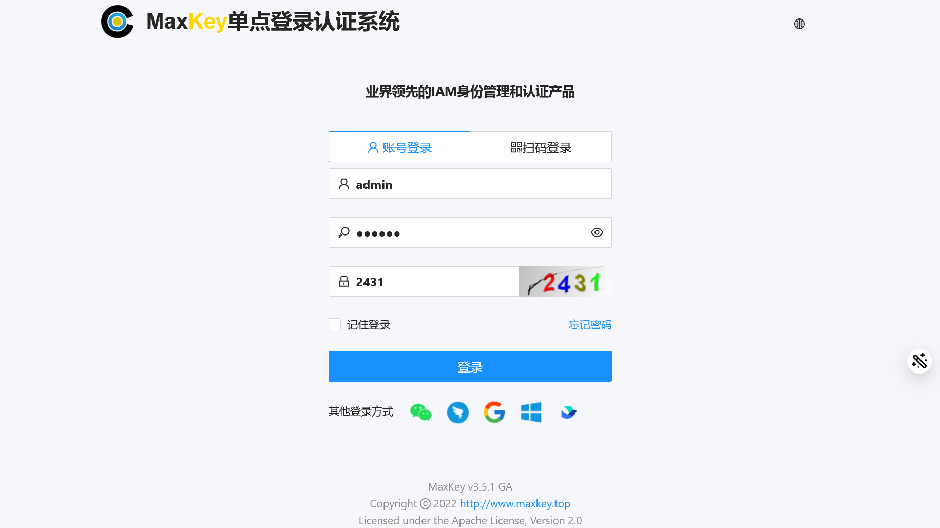 Maxkey Single Sign On System, which means the Maximum key, Leading-Edge IAM Identity and Access Management Product , Support OAuth 2.x/OpenID Connect, SAML 2.0, JWT, CAS, SCIM and other standard protocols, and provide Secure , Standard and Open Identity management (IDM), Access management (AM), Single Sign On (SSO), RBAC permission management and Resource management.
